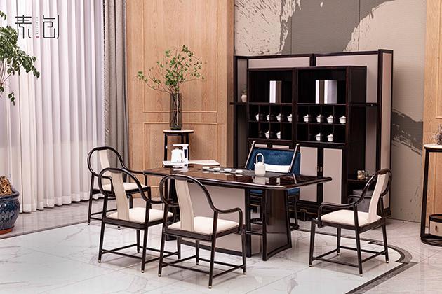 茶室是家中可供更新的另一处空间。秋季天气转凉,茶室可增添一些暖色元素,如浅棕的坐垫或暗调的茶具。条纹乌木茶桌质感沉稳,表面多经过哑光处理,不易反光,显得低调而柔和。更换茶具或收纳器皿的样式,选择线条简洁、颜色素雅的款式,与木材的自然质感配合。